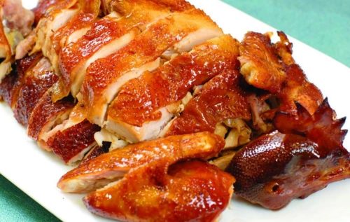 用一句美妙的话叫做:肥水不流外人田!熏鸡肉质鲜嫩、鲜而不腥、低脂肪,营养极为丰富,深受温州人的喜爱明嘉靖年间,相传在大年前夕大雪纷飞的夜晚,温州的一糖工在糖坊取了些蔗渣用于家中烧火,蔗渣产生的烟气附着于灶台上方挂着的腊鸡,在除夕宴上蒸出来的该腊鸡色泽枣红,腊味中带有淡淡的蜜糖焦香,滋味美妙非凡!原来,蔗渣纤维中残留的糖分在火焰的炙烤下,散发出焦糖香气,附着在腊鸡表面,赋予了腊鸡浓醇熏香和枣红色泽.此后勤劳的温州人开始把糖熏工艺引用到制作的腊鸡中,盼望来年事事“吉(鸡)祥如意”!