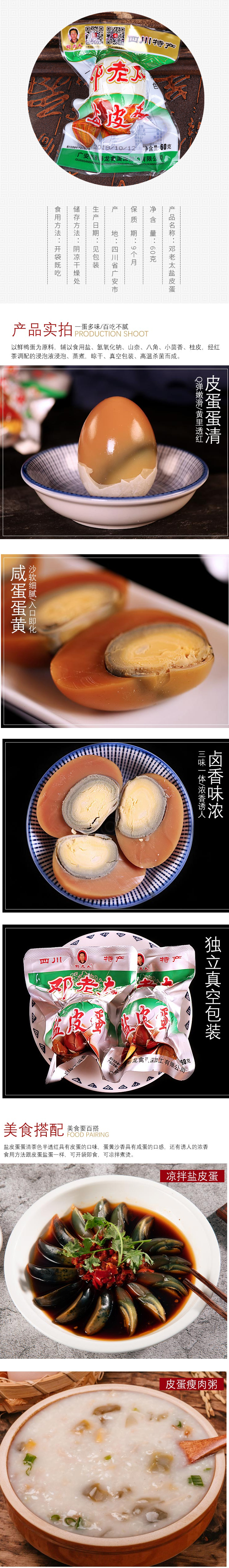 市面上的包装的盐皮蛋和广安传统流传的盐皮蛋还是有很大的区别的。但传统的不利于保存,一般保存期只有几天!菜品特色皮蛋的清,盐蛋的黄,蛋黄的周围有天然的蛋黄油,蛋黄翻沙,蛋清嫩、香,富有弹性,食用香醇可口,口感佳,令人回味无穷!盐皮蛋起源于四川省广安市协兴镇牌坊村,传统工艺已有一百多年的历史.盐皮蛋是地道的广安土特产之一,怪就怪在它取盐蛋和皮蛋的优点!产品生产采用无铅工艺,既没有盐蛋那么咸、又没有皮蛋碱性那么大.
